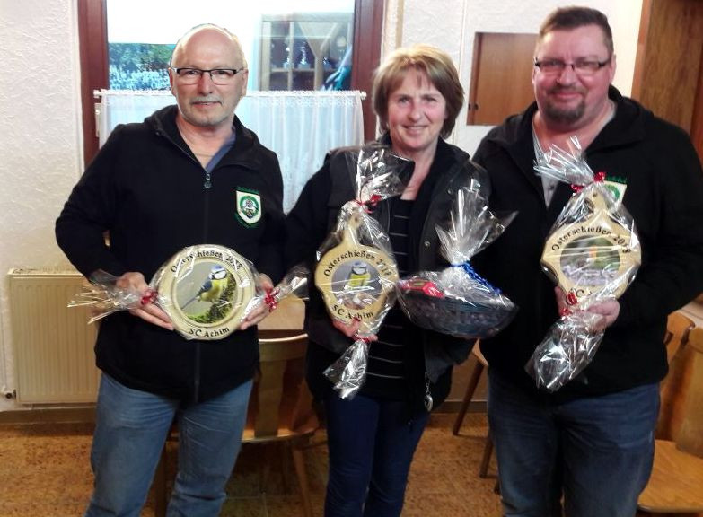 Am Mittwoch den 21.03.2018 fand im Achimer Sport- und Schützenheim wieder unser Osterschießen statt. Dazu kamen zahlreiche Schützinnen und Schützen um auf die Ostereier zu schießen und eine hohe Punktzahl zu erreichen. Es konnten insgeamt 57 Punkte erreicht werden. Es war ein schöner Wettkampf mit viel Spaß (vor allen am Frauentisch ging es hoch her) für alle Schützen.