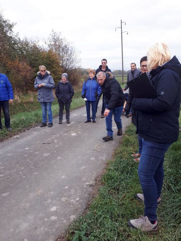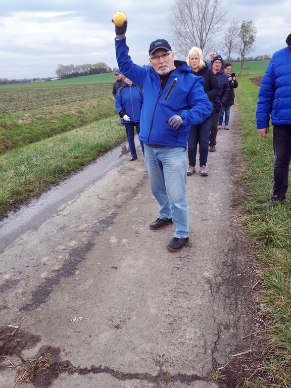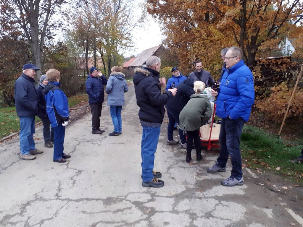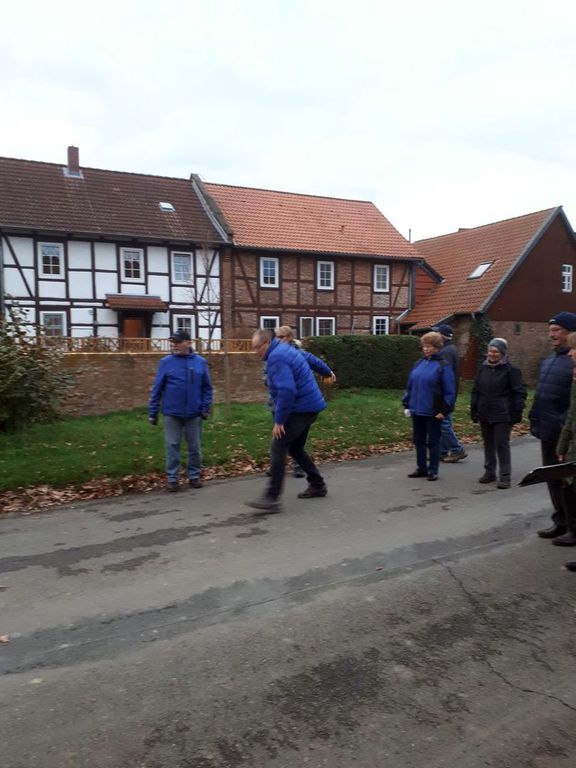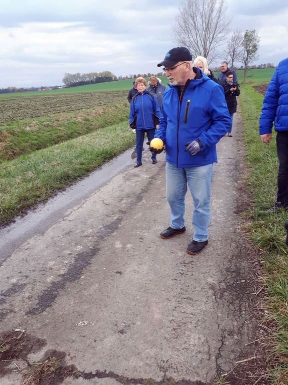 Der 1. Vorsitzende Werner Matheus begrüßte die Mitglieder und schon ging es los in die Achimer Feldmark. Es wurden zwei Teams gebildet und zwar die Frauen gegen die Männer. Der Weg führte einmal um das Viereck und anschließend nochmal durch das Dorf über die Alte Dorfstraße, Kirchstraße dann in Richtung Sportplatz wo das Ziel dann war.