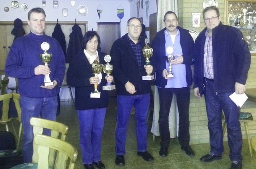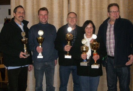 Die Gewinner 2013: (v. links Andre` Schliephake, Christa Meier, Rainer Meier, Werner Mattheus und 1. Vorsitzender Matthias Reiner)