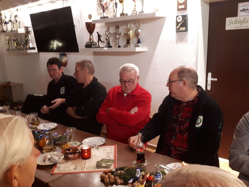 Am Mittwoch den 19.12.2018 fand die Weihnachtsfeier des SC Achim im Sport- und Schützenheim in Achim statt. Der 1. Vorsitzende Werner Matheus begrüßte dazu die Schützen recht herzlich. Nach seiner Laudatio gab es für die fleißigen Helfer die im laufe des Schießjahres den Schützenverein in allen Bereichen unterstützt haben kleine Präsente.