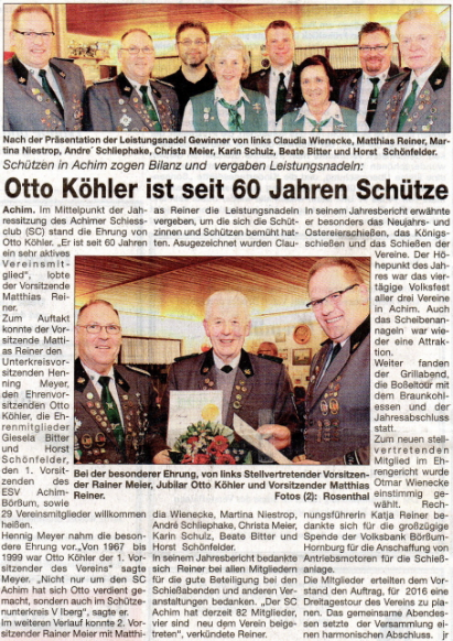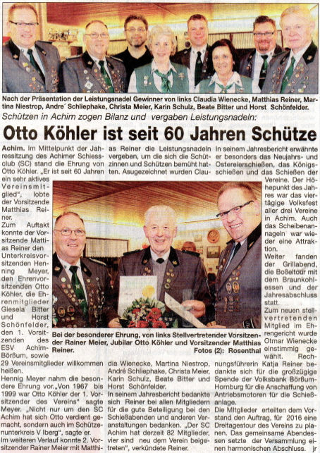Otto Köhler 60 Jahre SC Achim. Schaufenster 22.02.2015