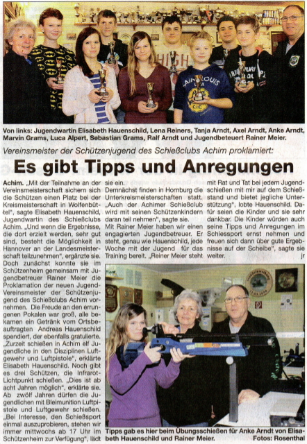 Vereinsmeister der Schützenjugend Achim. Schaufenster 25.02.2015