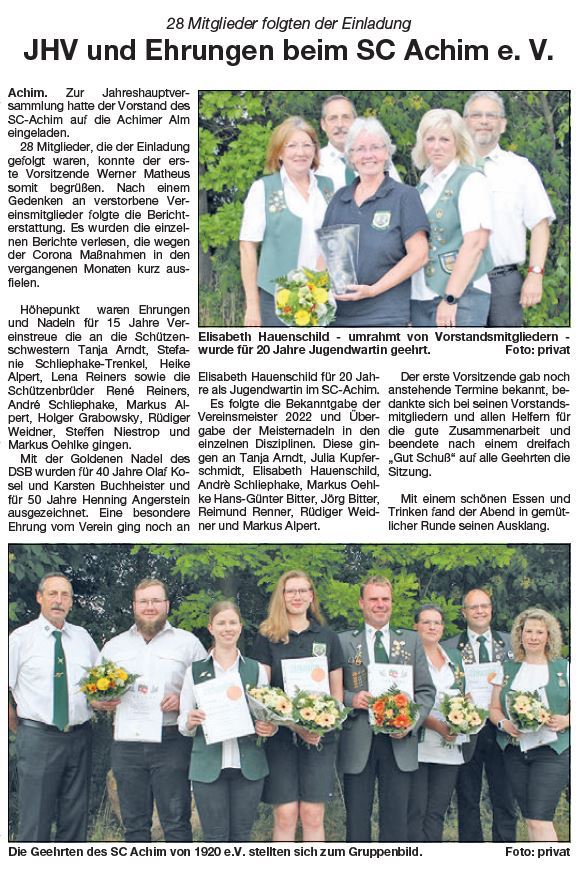 Schaufenster vom Sonntag 11122022 JHV SC Achim